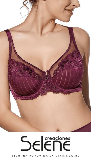 Prekrasan grudnjak iz kolekcije donjeg rublja Selene Creationes. Neobložene korpe, sa žicom, umetci od tila i čipke sa cvetnim motivom. Podesive bretele. Idealno za veće grudi. Grudnjak sa žicom i kombinacijom elegantne tkanine, tila i čipke.