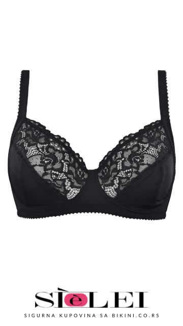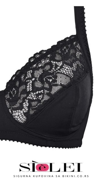 Grudnjak bez žice od mikrofibra rastezljive tkanine u kombinaciji sa ton-sur-ton čipkom sa cvetnim vezom. Šalice imaju nabore za bolje pristajanje; takođe su podstavljene pamukom iznutra. Bretele su podesive. Ovaj komad je napravljen od posebno čvrste tehničke tkanine kako bi nežno obuhvatio krivine žena, čak i bez žice. Pločica sa SièLei logotipom.